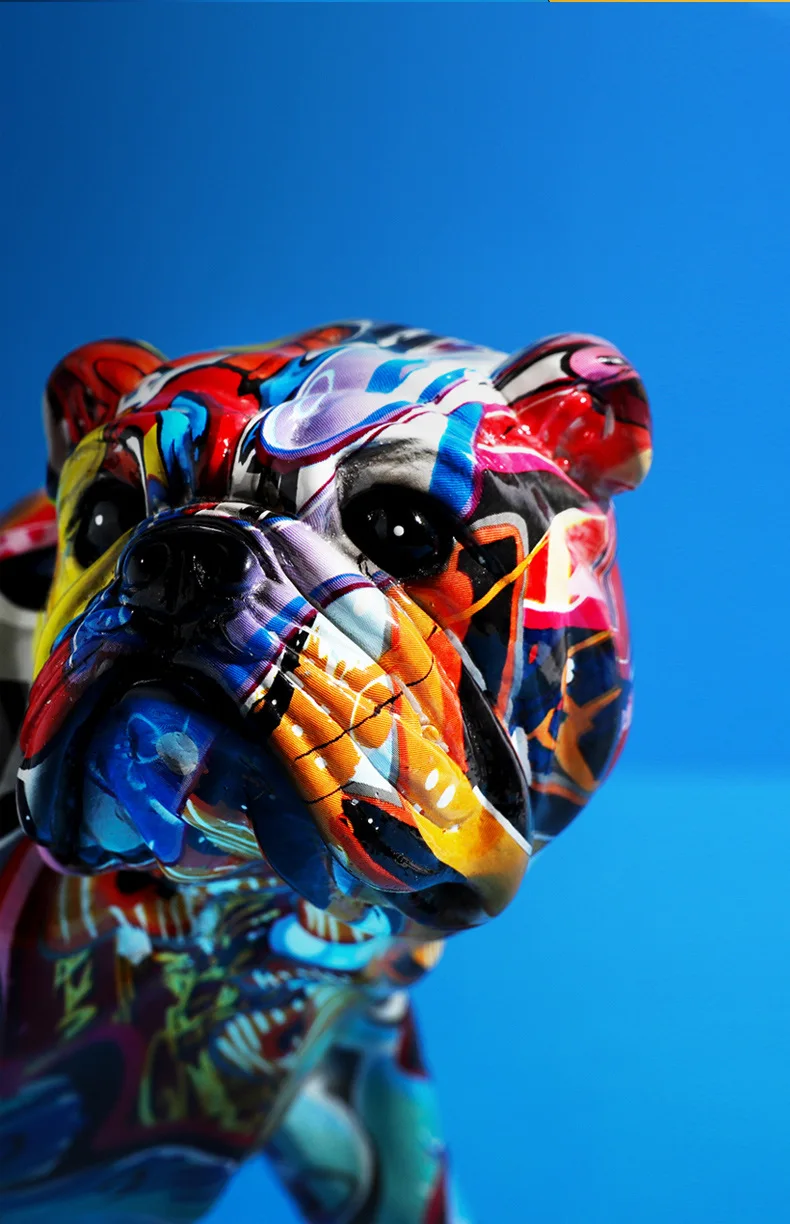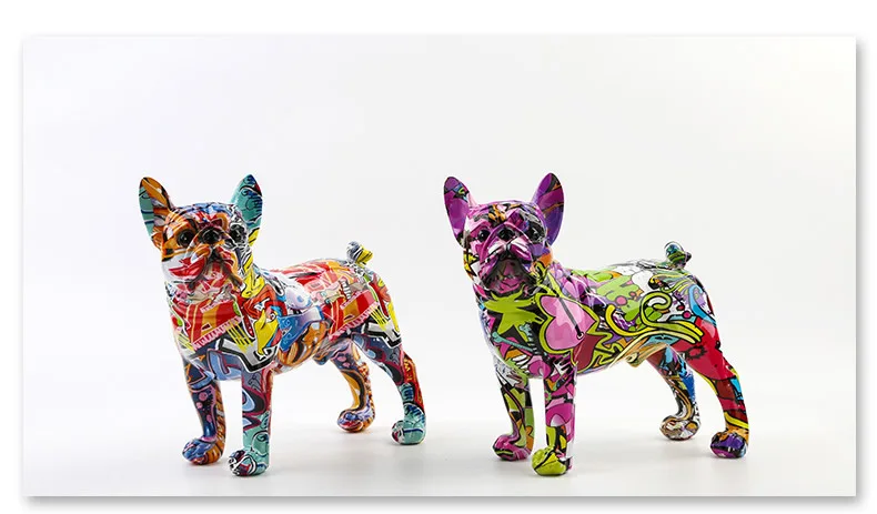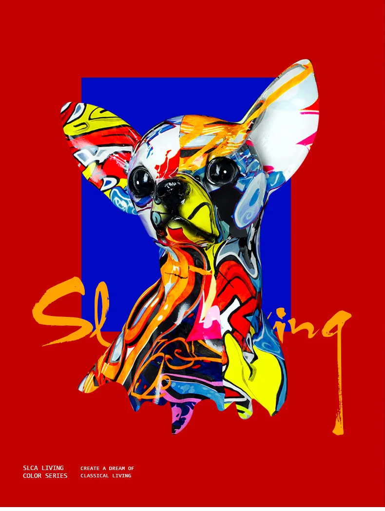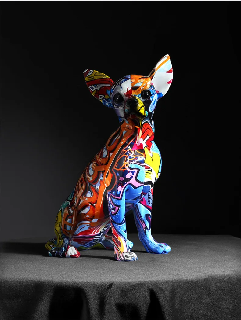 Creative Color Bulldog Chihuahua Dog Statue Figurine Resin Sculpture Home Office Bar Store Decoration Ornament Crafts