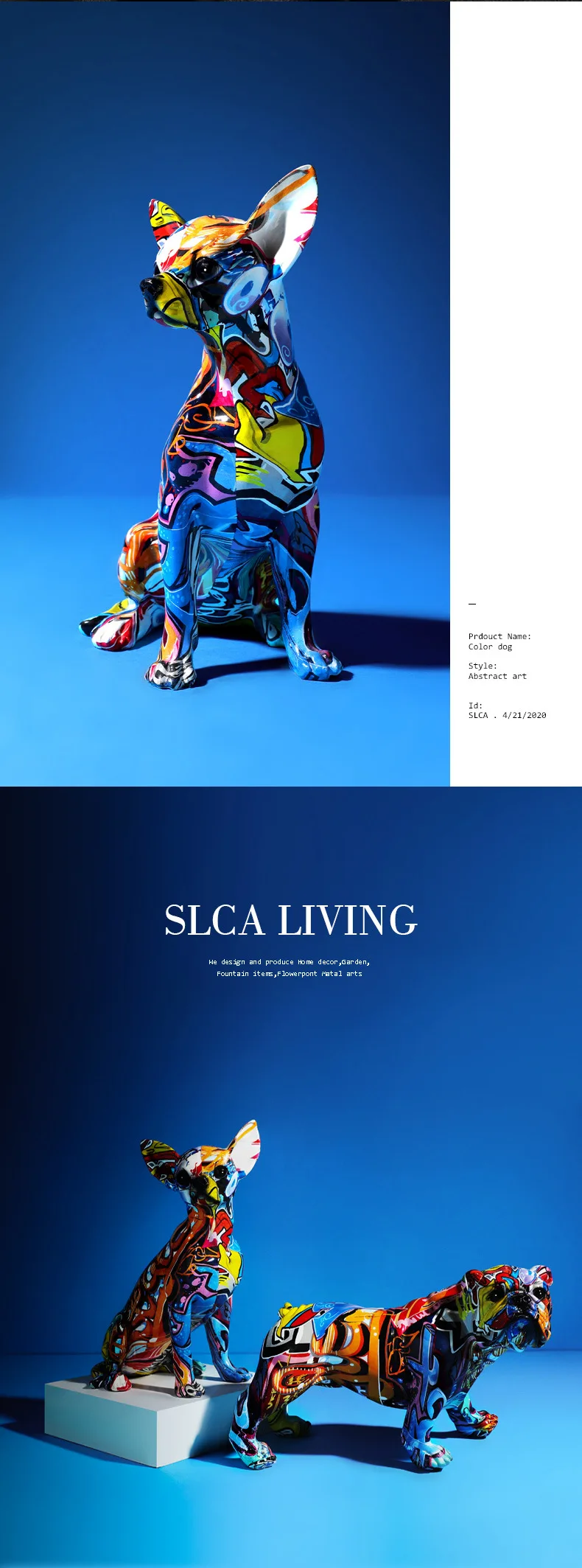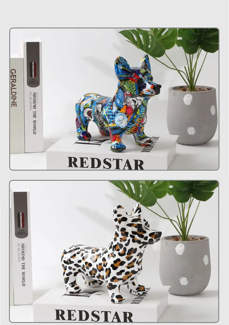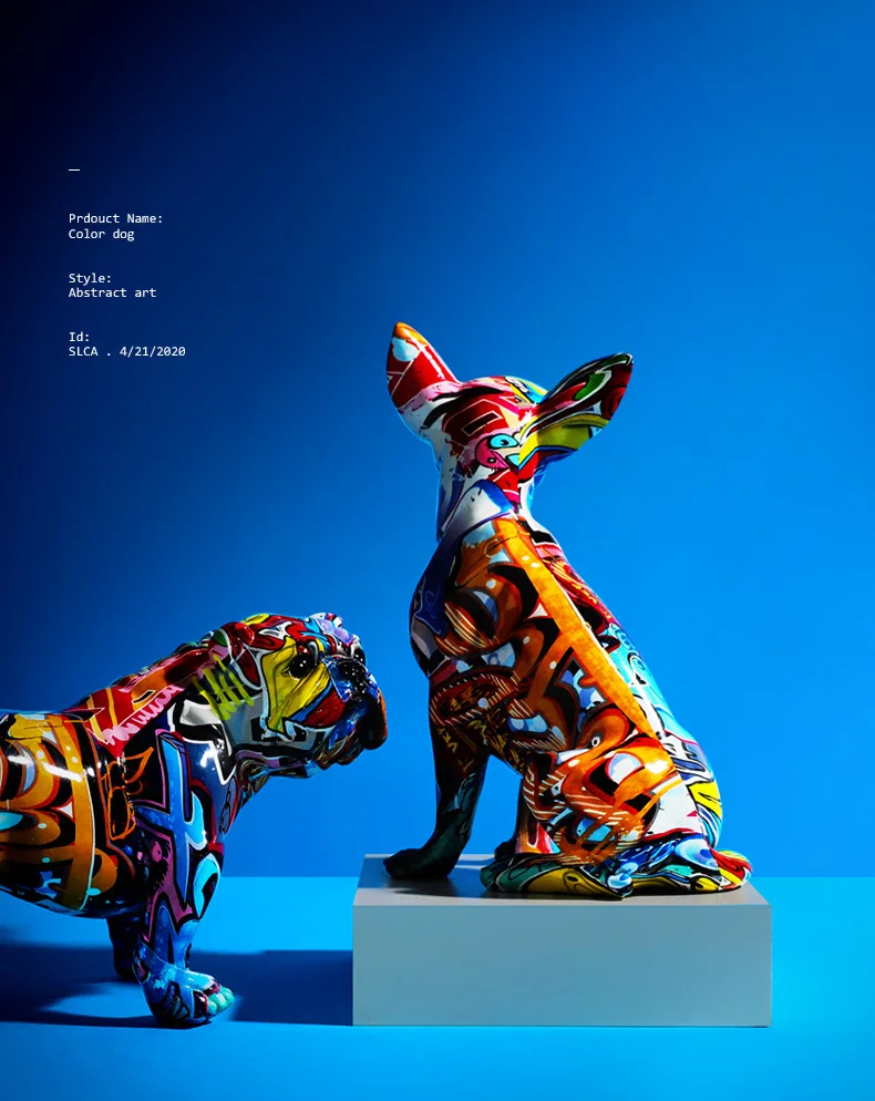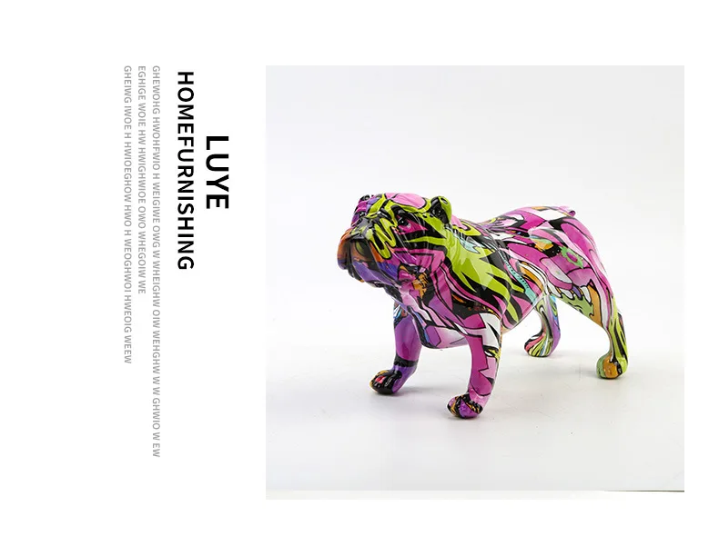 Creative Color Bulldog Chihuahua Dog Statue Figurine Resin Sculpture Home Office Bar Store Decoration Ornament Crafts